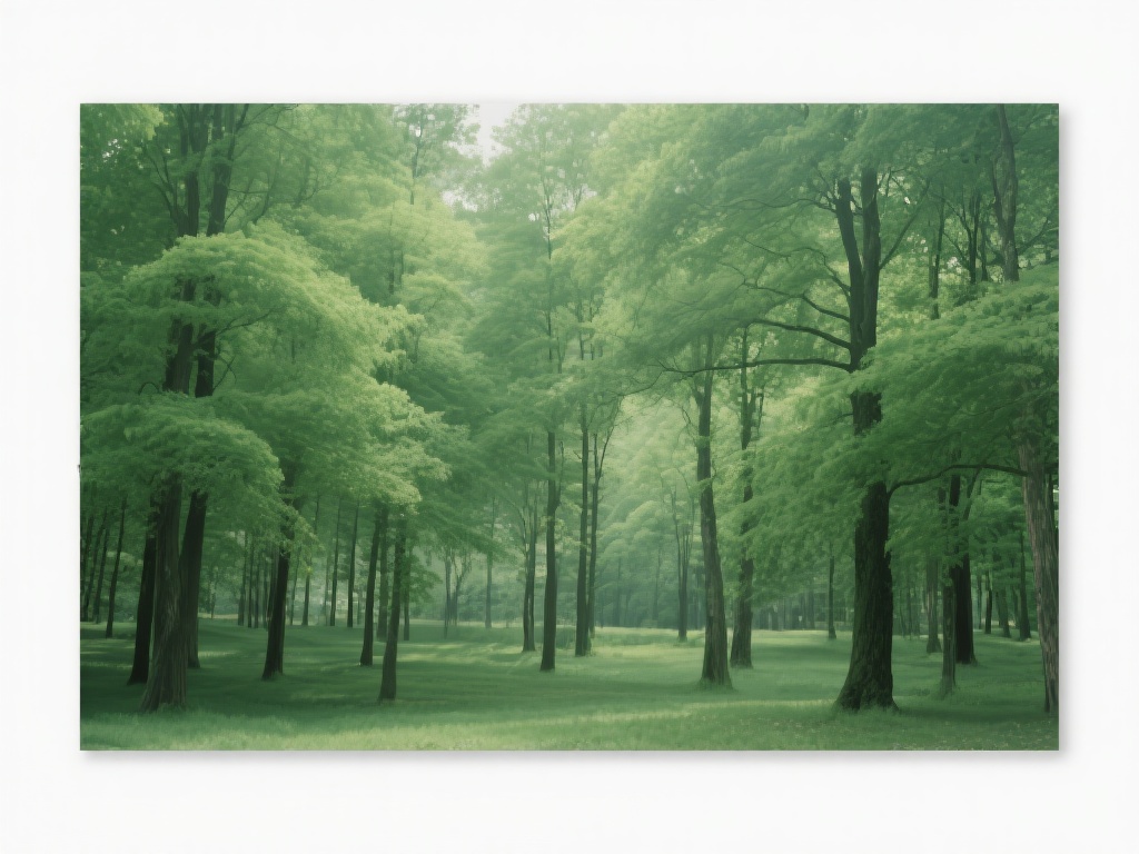 树林总是令人心醉。图片中的树木高低错落,有的粗壮挺拔、直抵云霄,有的低矮稚嫩、充满生命的活力。有些树枝繁叶茂,浓密的绿色几乎遮蔽了一切;有些则稍显稀疏,却以别样的线条美展现自然的雕刻。如果照片取景于晨雾弥漫之时,那么树林便仿若在薄纱中隐现,给人一种梦幻般的美感。微弱的晨曦洒在树叶上,露珠晶莹,仿佛是大地的眼泪,又好像是夜晚留给黎明的礼物。